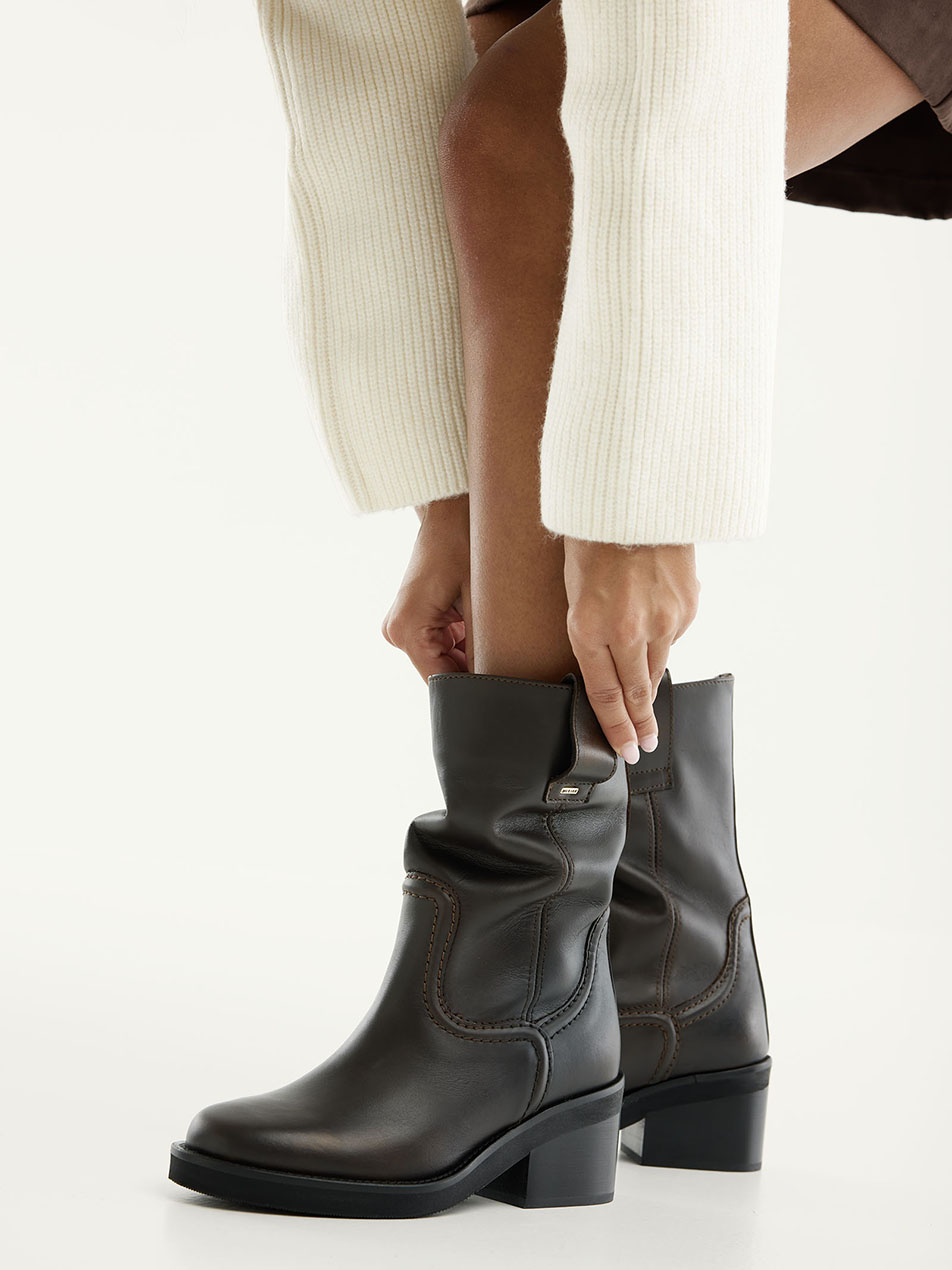 Crafted from premium leather, the Cassy Slouch boots combine traditional elements with a modern twist. The lightweight EVA sole ensures maximum comfort, while the round toe, back seam, and riding stitch design add distinctive flair.
