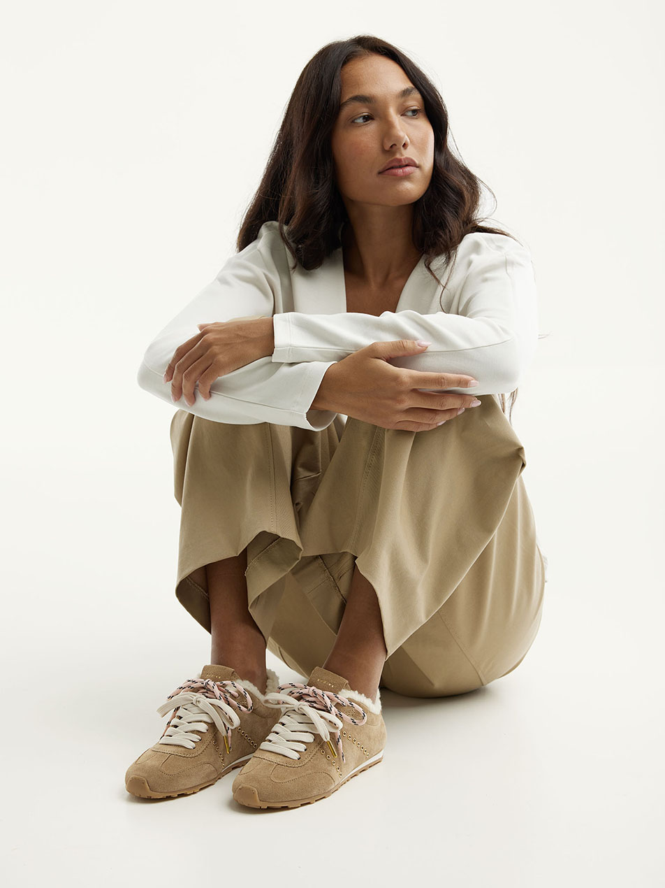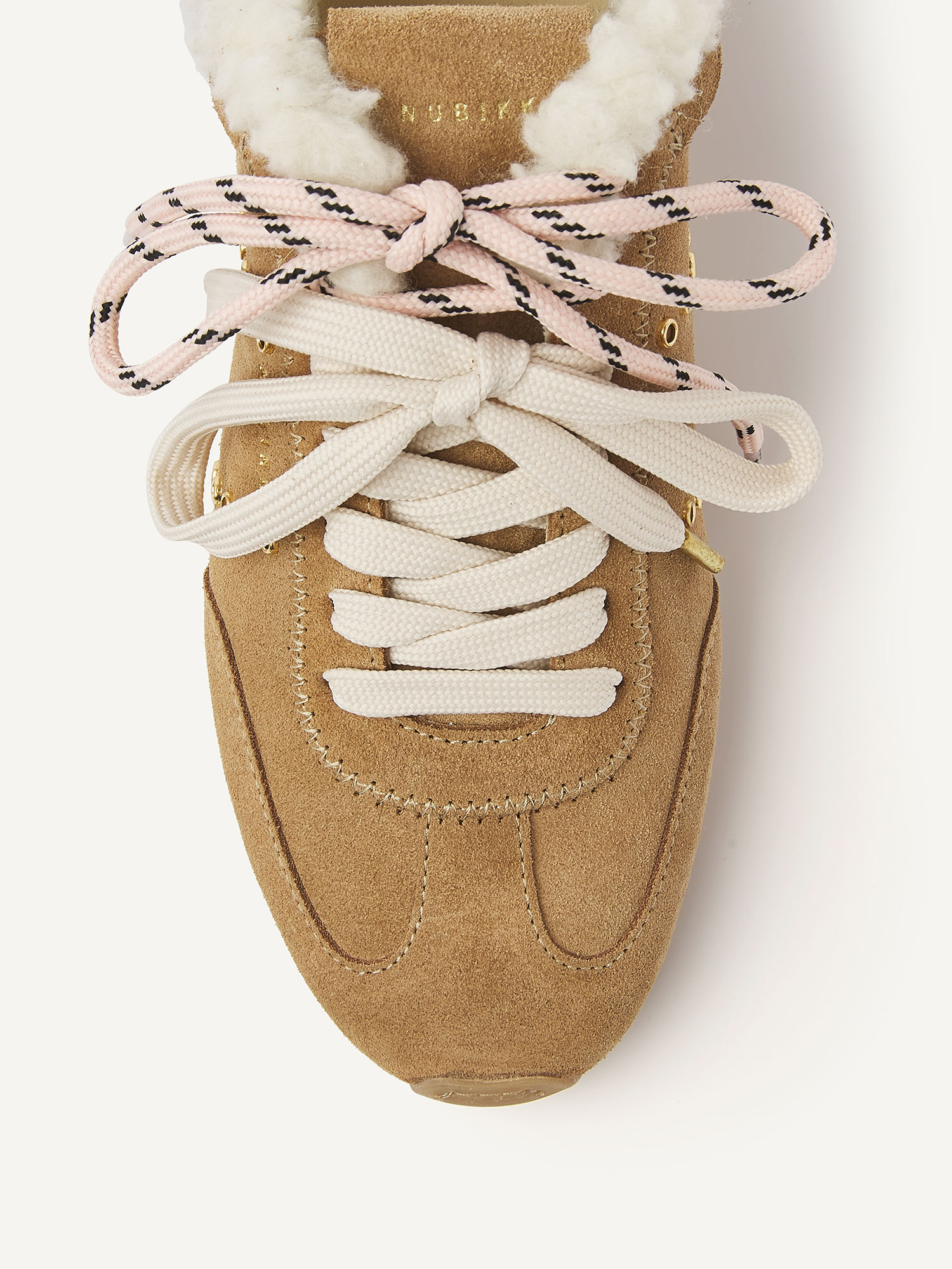The Billy Lou in Oak Suede is a sneaker for women featuring a combination of high quality material with stylish double laces and a lining of soft faux fur. Finished with an extra comfortable, lightweight TPU sole for added comfort.