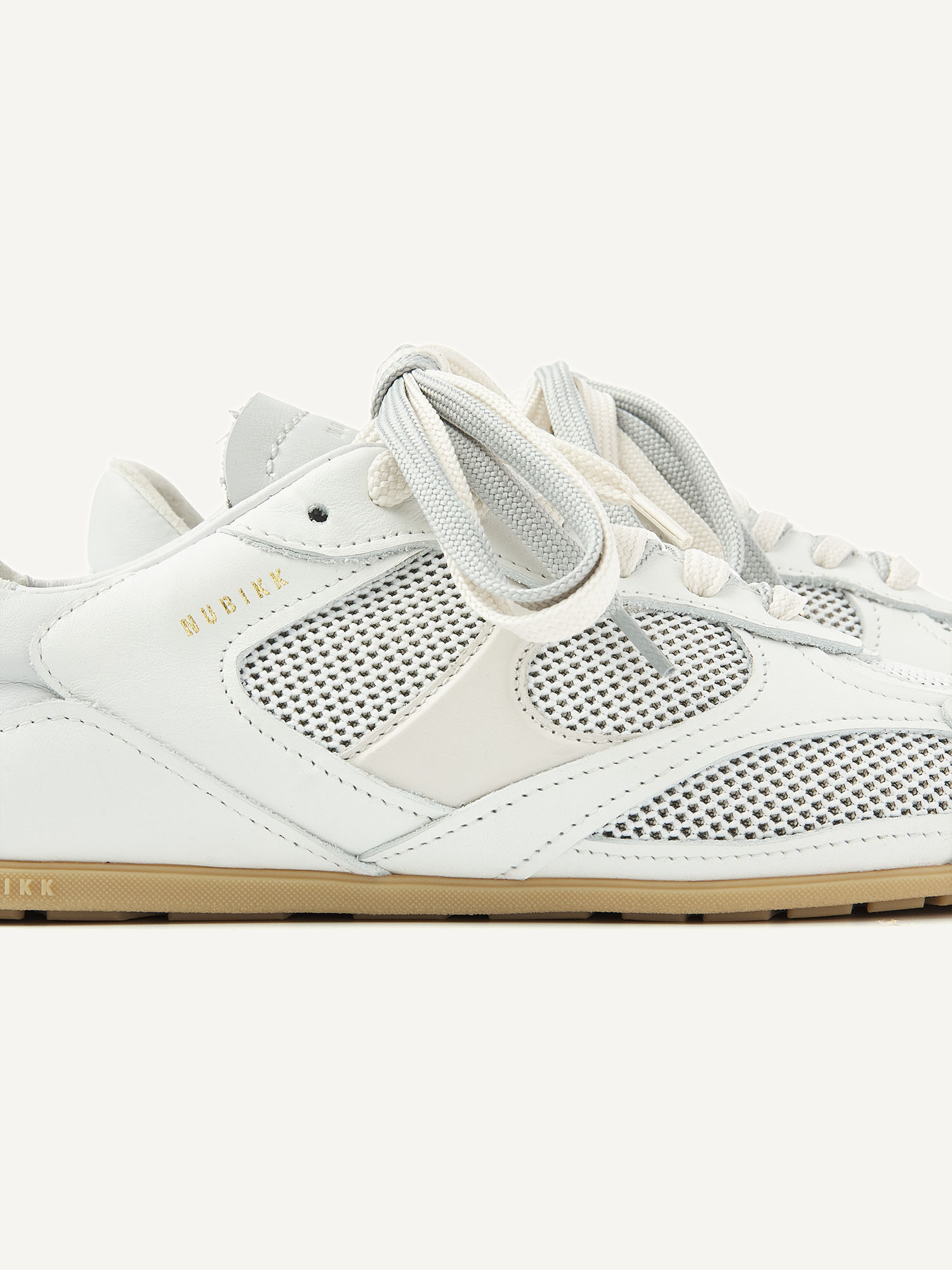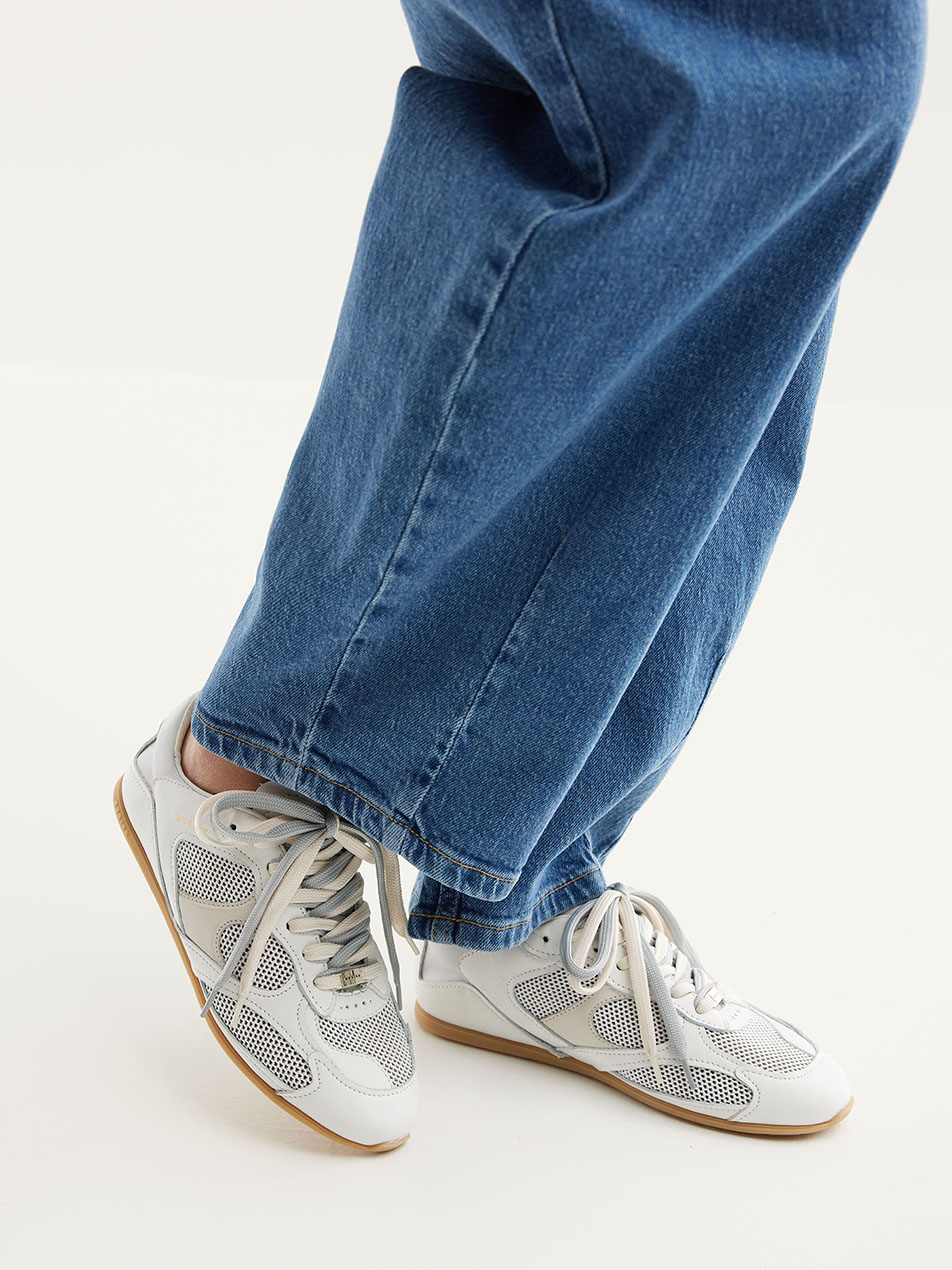 The Riley Morgan in light grey is a layered runner with a retro feel. The combination of leather and mesh in soft grey tones creates a fresh, versatile look. The double laces add a playful detail but can also be worn as single laces. Thanks to the rubber sole and leather lining with a terry heel, this sneaker offers the perfect balance between comfort and design.